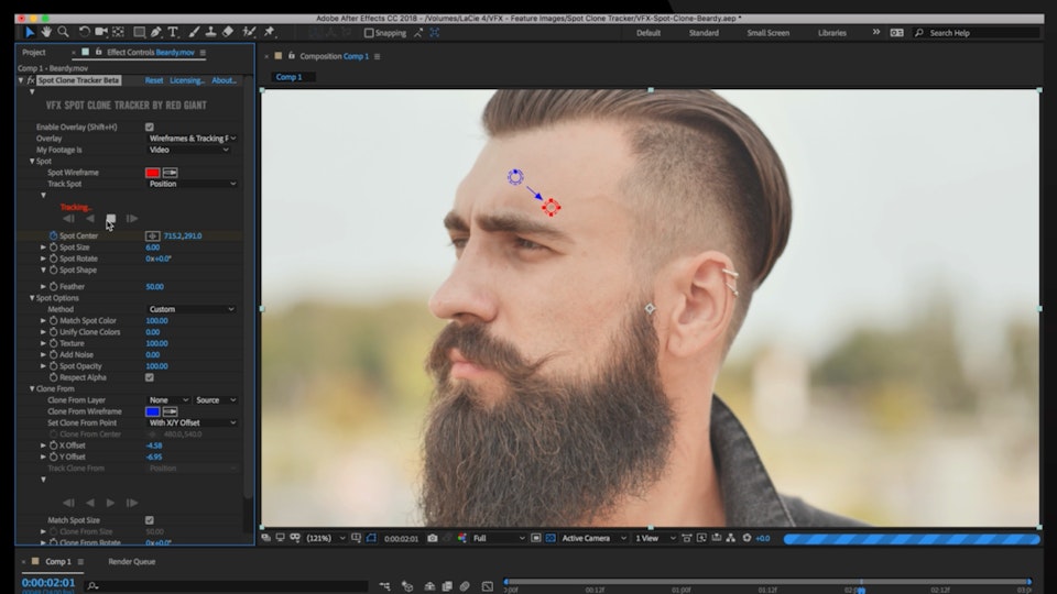Mit Spot Clone Tracker kannst du ganz einfach kleine Objekte oder Flecken aus deinem Filmmaterial entfernen, indem du Pixel aus benachbarten Bereichen hineinkopierst. Egal, ob du versuchst, Akne, eine Steckdose oder Motion-Tracking-Punkte zu entfernen, Spot Clone Tracker hat Sie im Griff. Buchstäblich.
