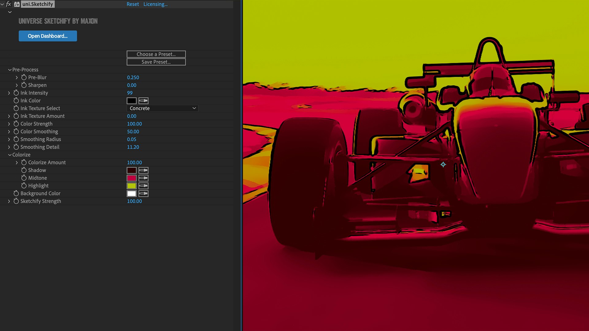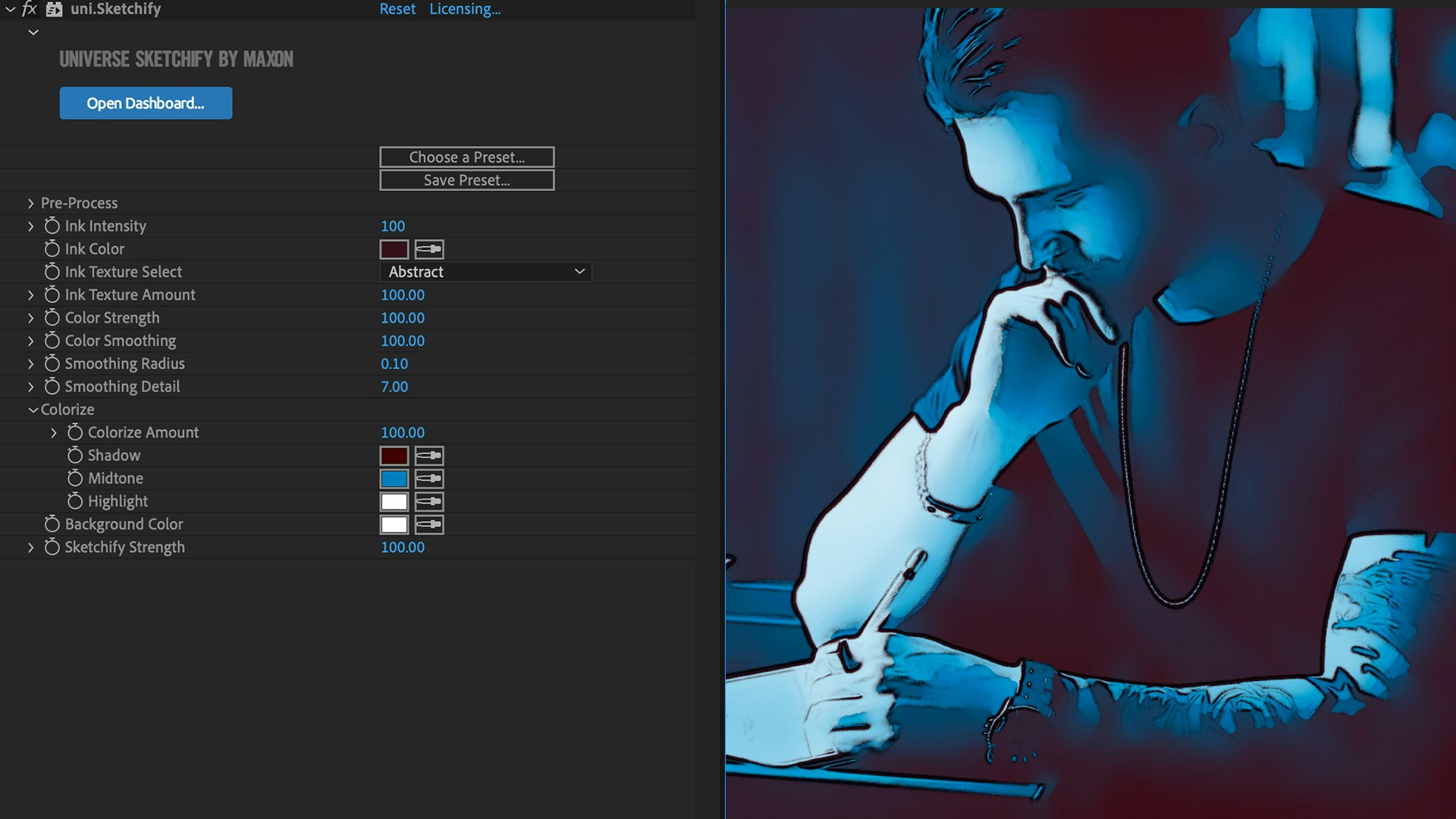 Sketchify includes 21 fully customizable presets that help you create a quick toon look.
